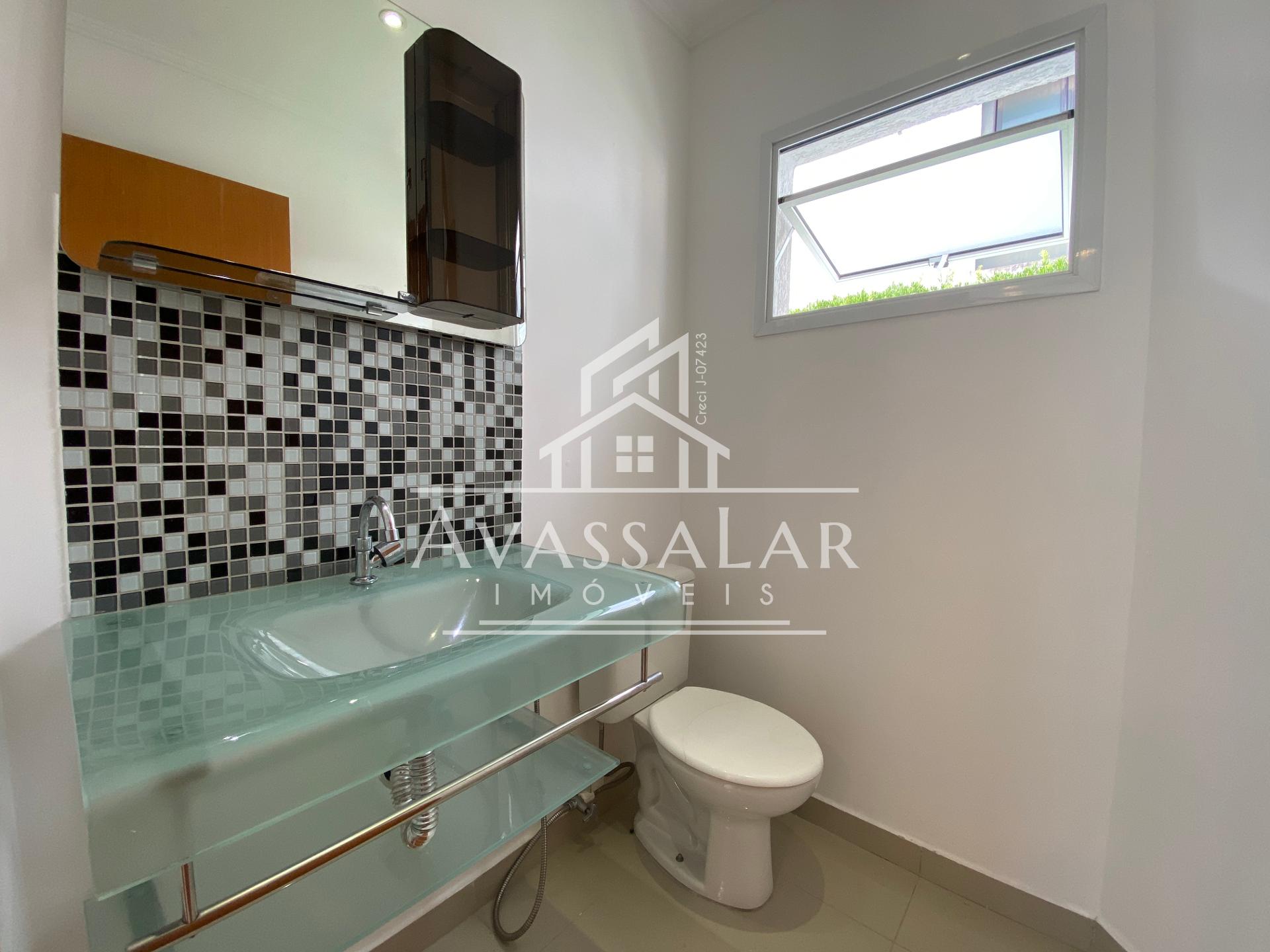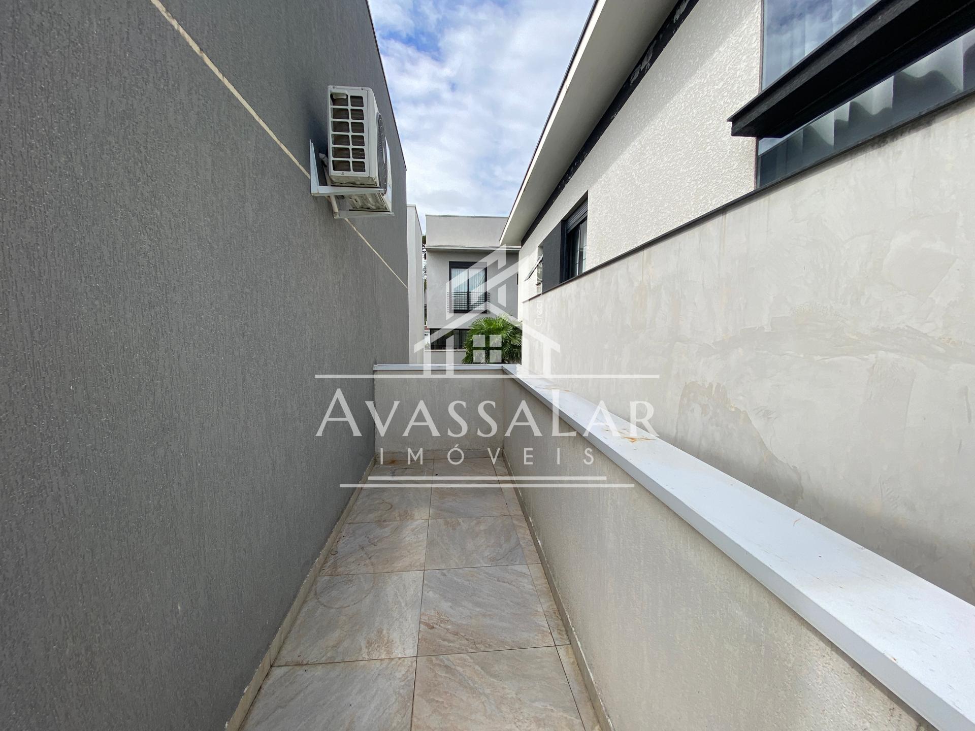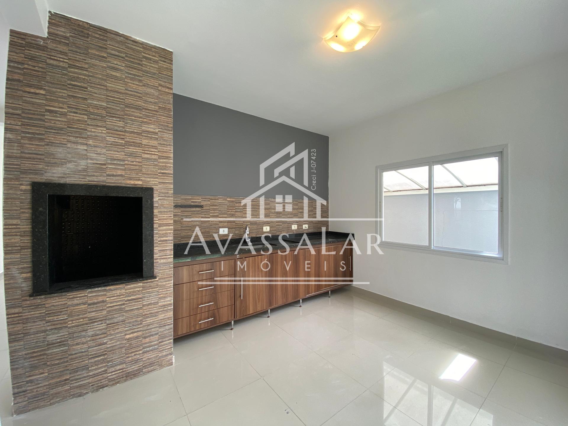 O imóvel apresenta acabamento em porcelanato, pé-direito duplo, aquecimento a gás e ampla garagem coberta para até 2 veículos.