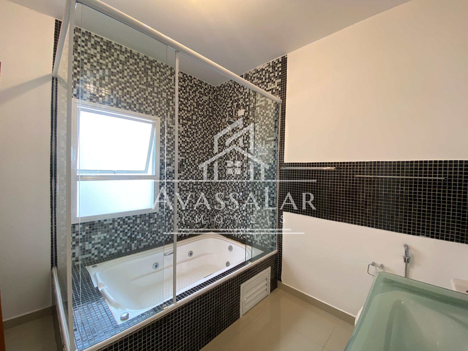 No segundo pavimento, encontram-se um elegante mezanino, 2 quartos com roupeiros planejados e uma suíte master equipada com closet e banheiro completo, incluindo chuveiro e banheira com hidromassagem, oferecendo máximo conforto.